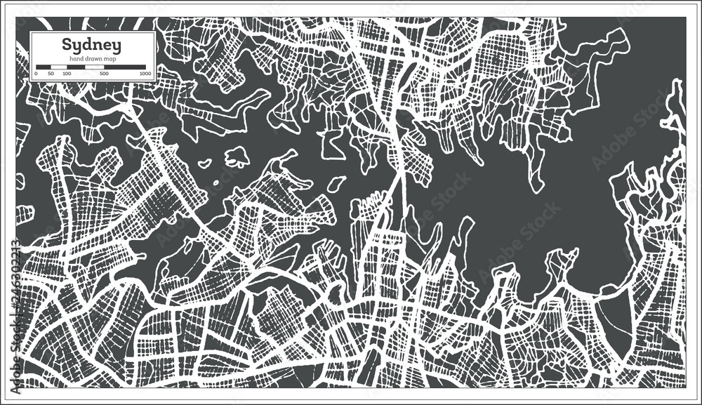 Samolepka Sydney Australia City Map in Retro Style. Outline Map.