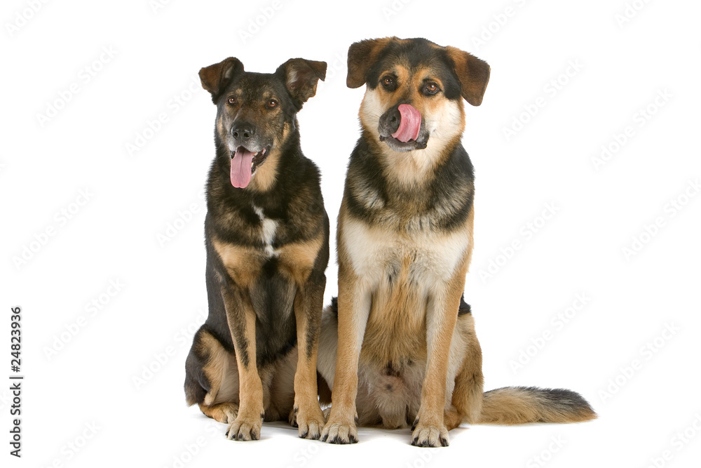 Samolepka mixed breed dogs sitting, isolated on a white background