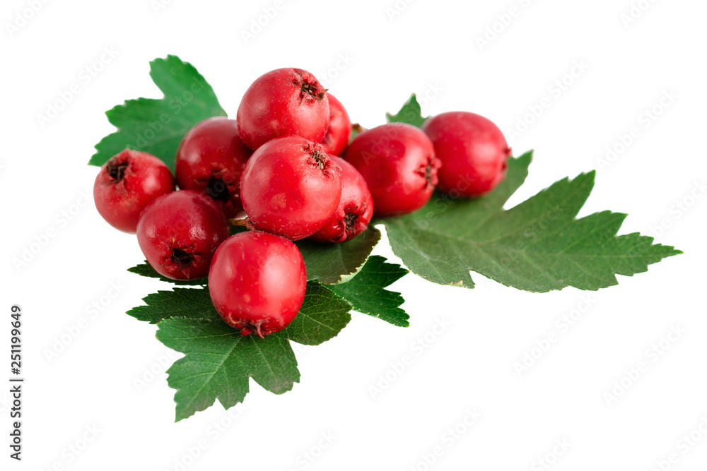 Samolepka hawthorn haws or berries with leaves isolated on white