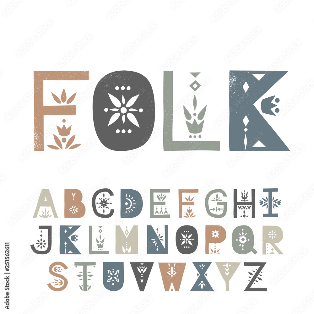Samolepka Vector display uppercase alphabet decorated with geometric folk patterns