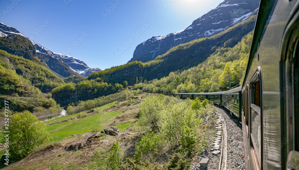Samolepka underway with the famous Flams railway, Norway, Scandinavia