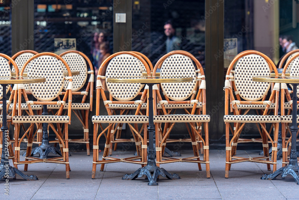 Samolepka Rows of traditional Chairs of a Street Cafe in France, french furniture in a Str