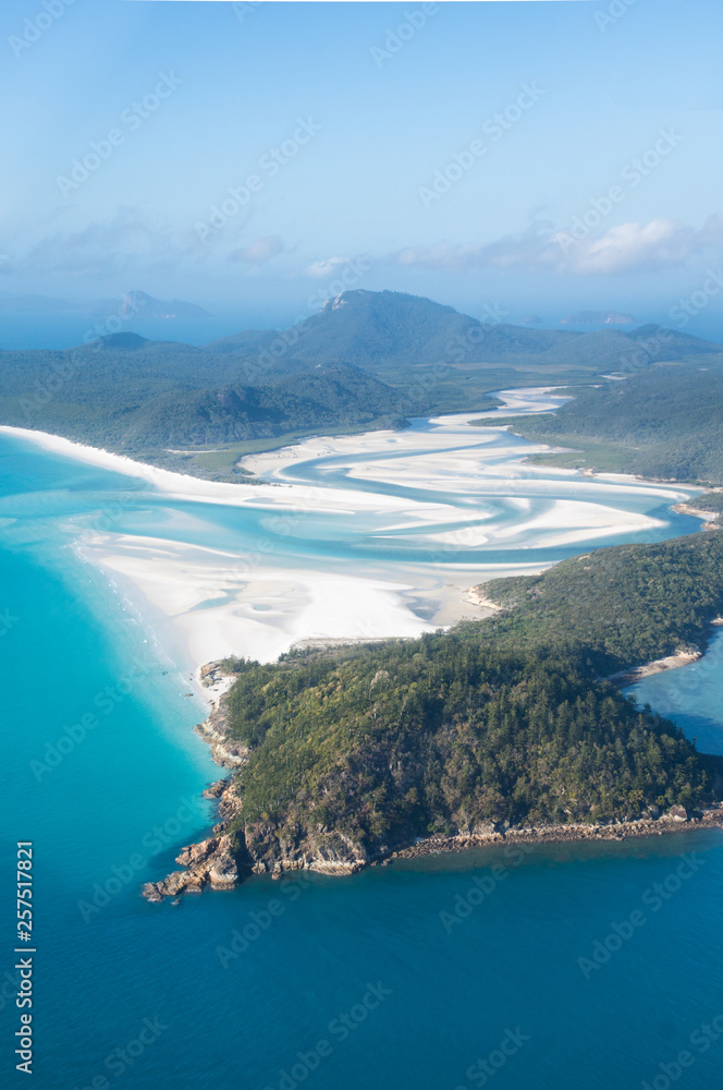 Samolepka aerial view over whitsunday island beach with blue sunny sky and white sand at w