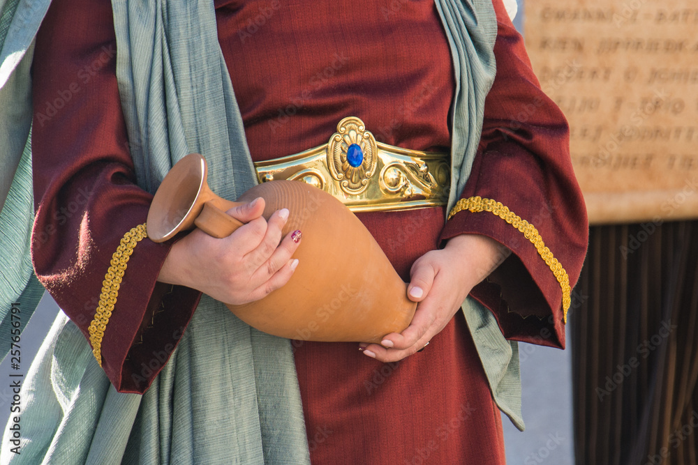 Samolepka A woman in a biblical costume holds a clay pitcher