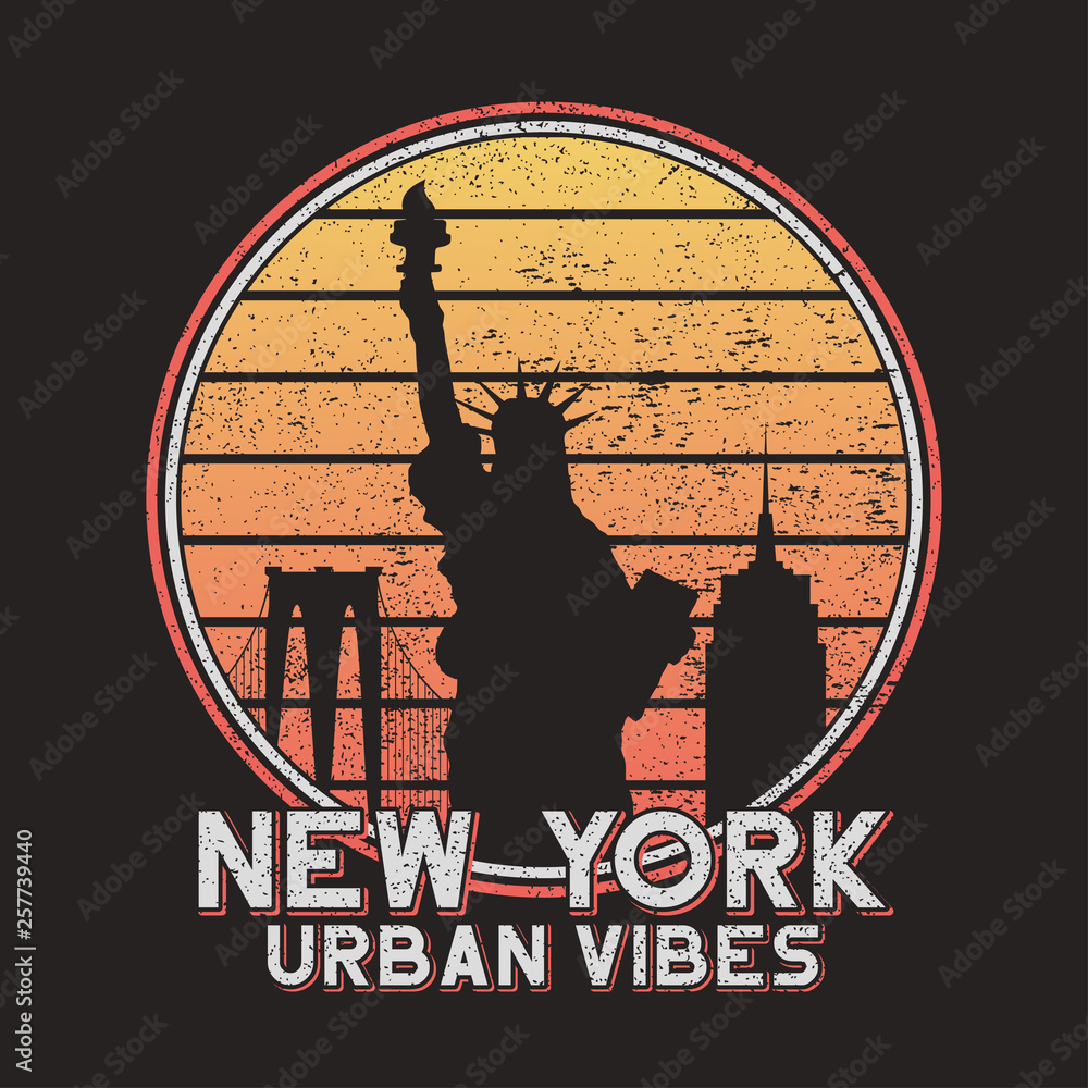 Samolepka New York slogan typography for design t-shirt with city buildings