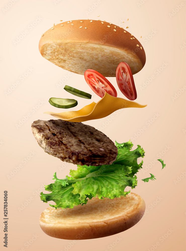 Samolepka Delicious flying hamburger