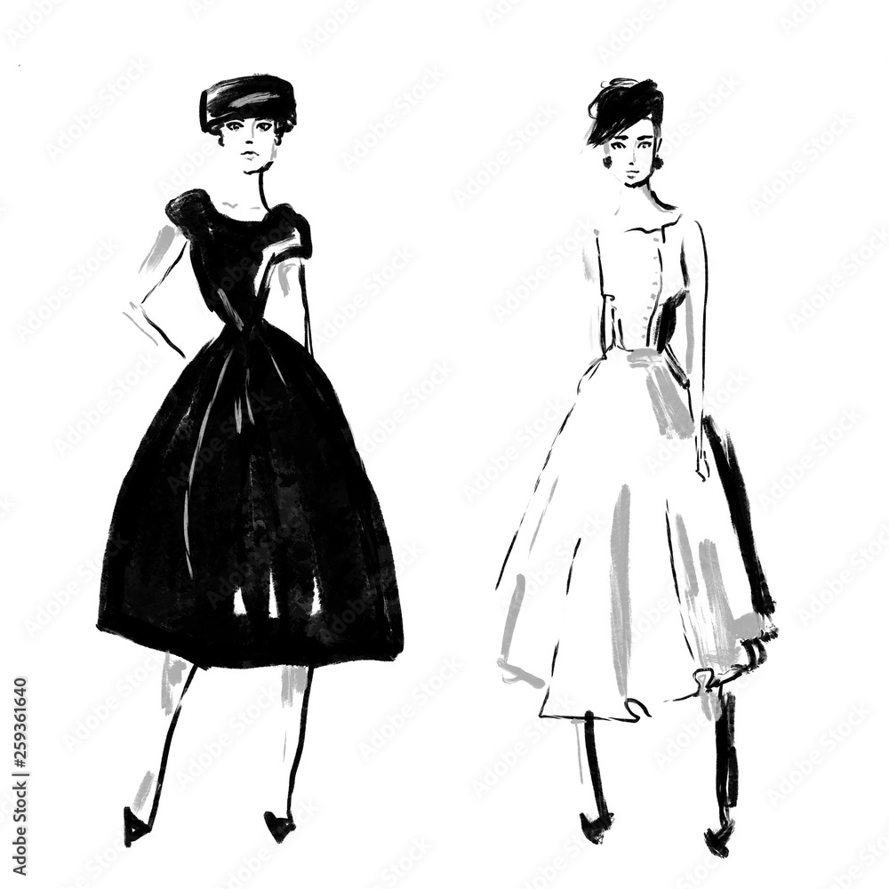 Samolepka Beautiful woman in retro style . vintage dress sixties years.