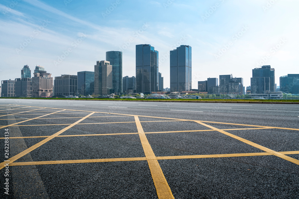 Samolepka Empty Asphalt Road Through Modern City of Shanghai, China..