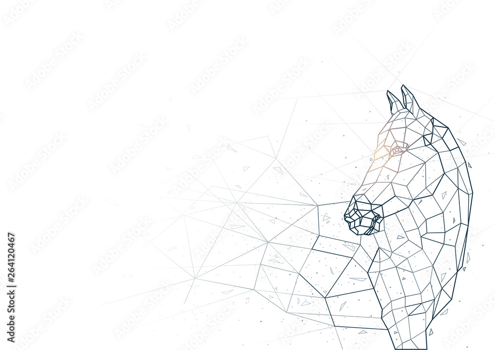 Fotografie Abstract Horse from Low Poly Wireframe Isolated on White Background - Polygonal