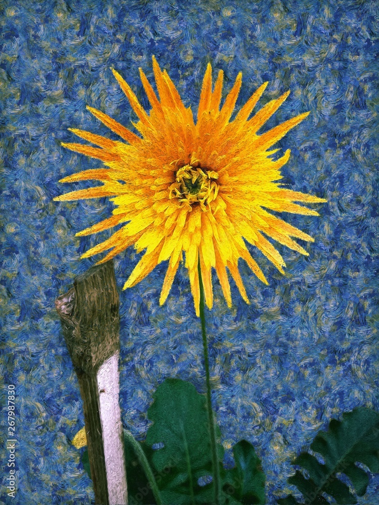 Samolepka A painting of yellow colour Barberton daisy in the style of post-impressionist painter Vincent van Gogh