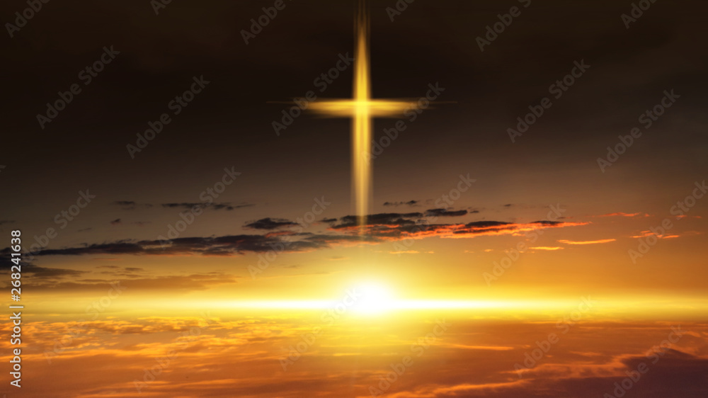 Samolepka Heavenly Cross Religion Symbol Shape Dramatic Nature Background Glowing Cross