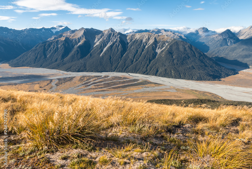 Samolepka aerial view of Waimakariri River and mountain ranges in Arthur's Pass National P