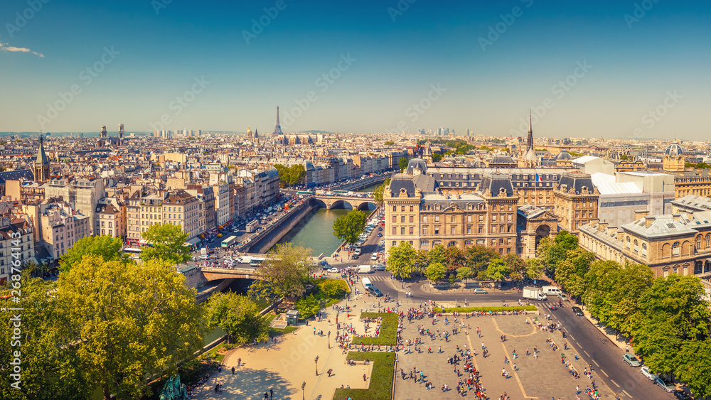 Samolepka Aerial view of Paris at springtime, France