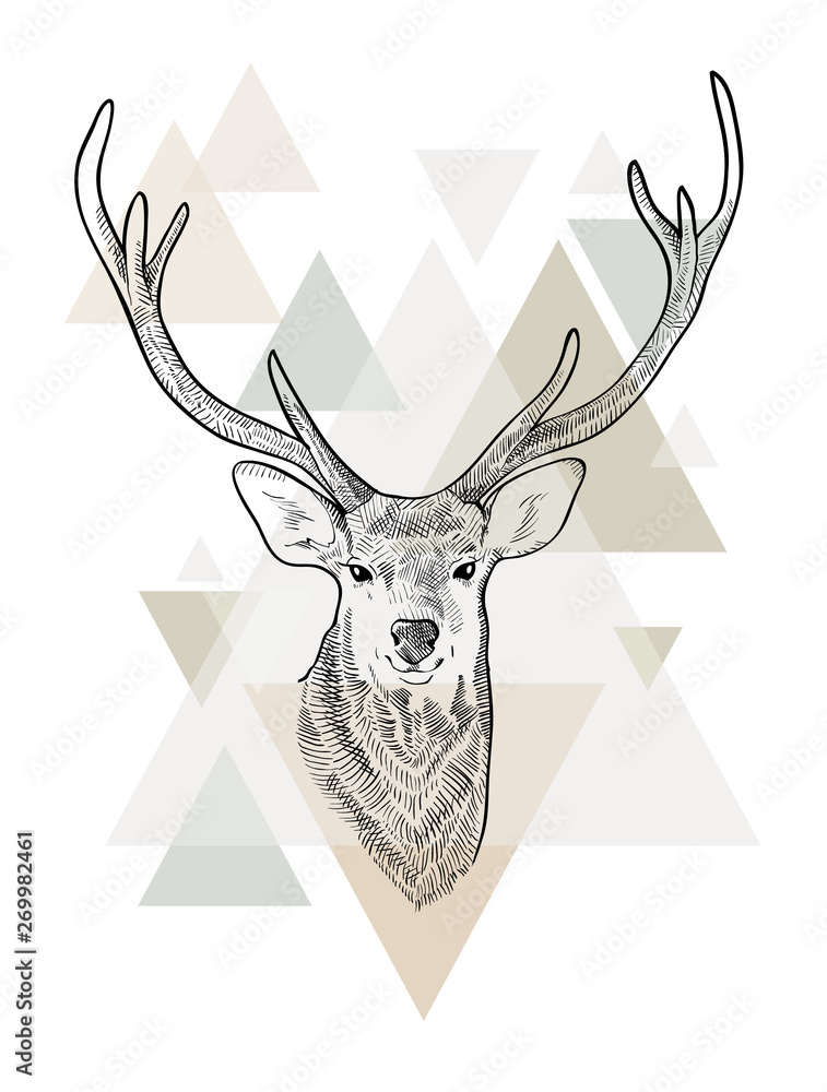 Samolepka Hand drawn head of deer. Scandinavian style