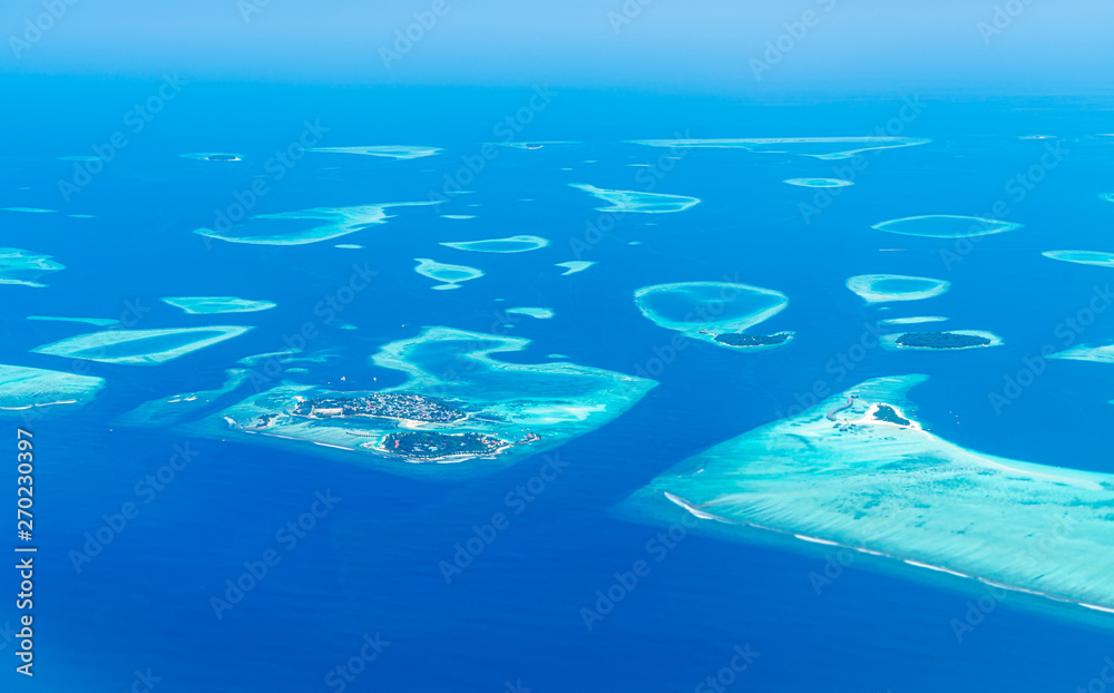Samolepka Maldives islands top view from airplane window