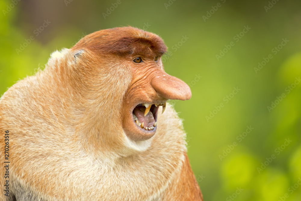 Samolepka Proboscis monkey (Nasalis larvatus) or long-nosed monkey, known as the bekantan in Indonesia, is a reddish-brown arboreal Old World monkey with an unusually large nose