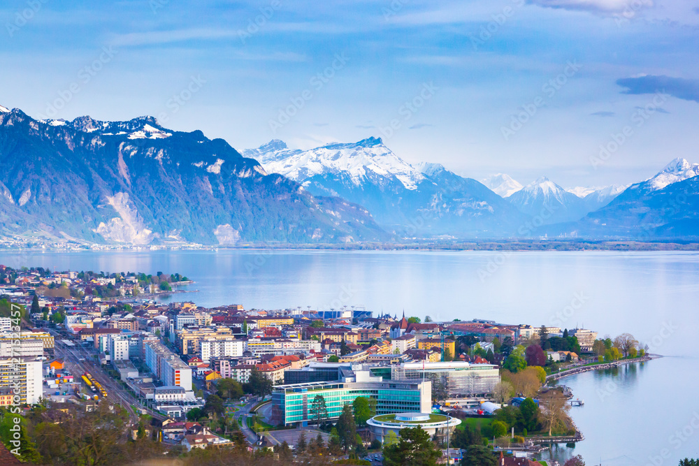 Samolepka Panorama of Montreux city, Lake Geneva and amazing mountains in Switzerland