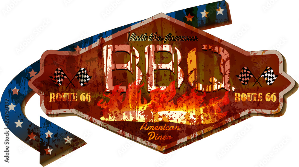 Samolepka retro super grungy old Route 66 barbecue BBQ diner sign, vintage style vector Il