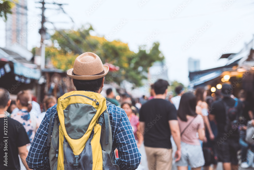 Samolepka Traveling man walking at Chatuchak Market in Bangkok Thailand.