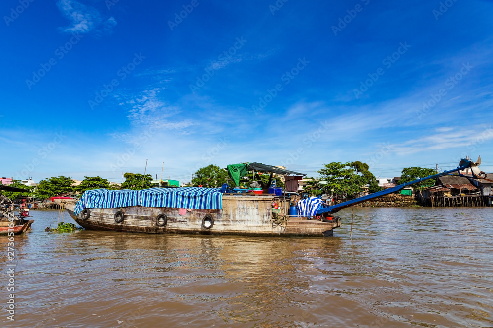 Samolepka Moored long-tail boat or sampan near Can Tho, Mekong Delta, Vietnam