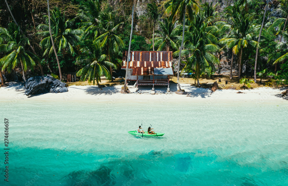 Samolepka Couple enjoying time kayaking in front of the beach in Coron