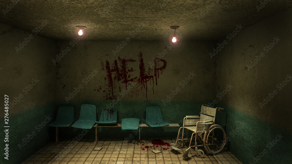 Samolepka Horror and creepy seat waiting and wheelchair in front of the examination room in the hospital and help Blood