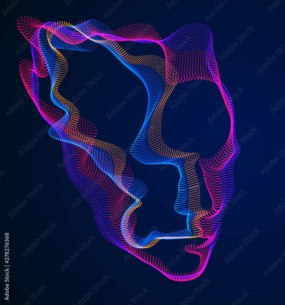 Samolepka Digital soul of machine, Artificial Intelligence software visualization of human head made of dotted particles flowing wave lines array