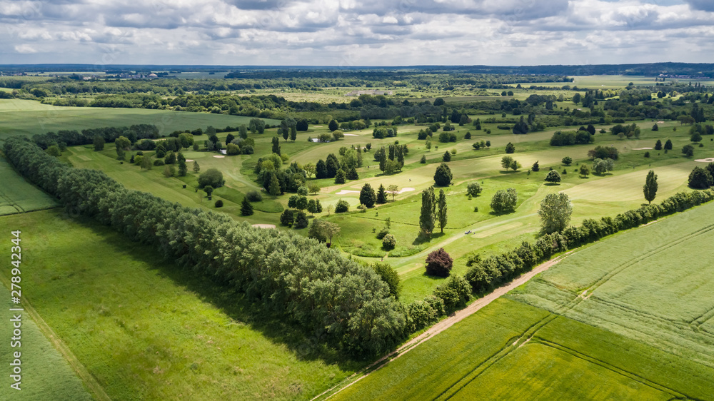 Samolepka Drone view of a golf course in Mennecy Chevannes France