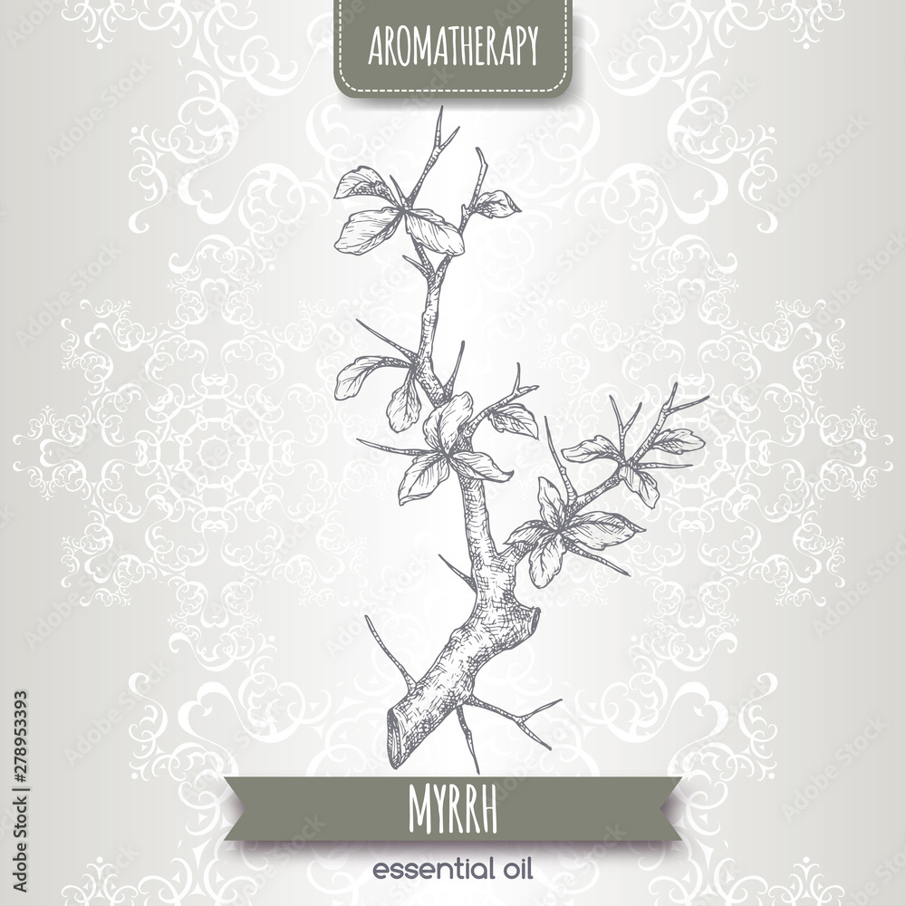 Samolepka Commiphora myrrha aka common myrrh sketch on elegant lace background
