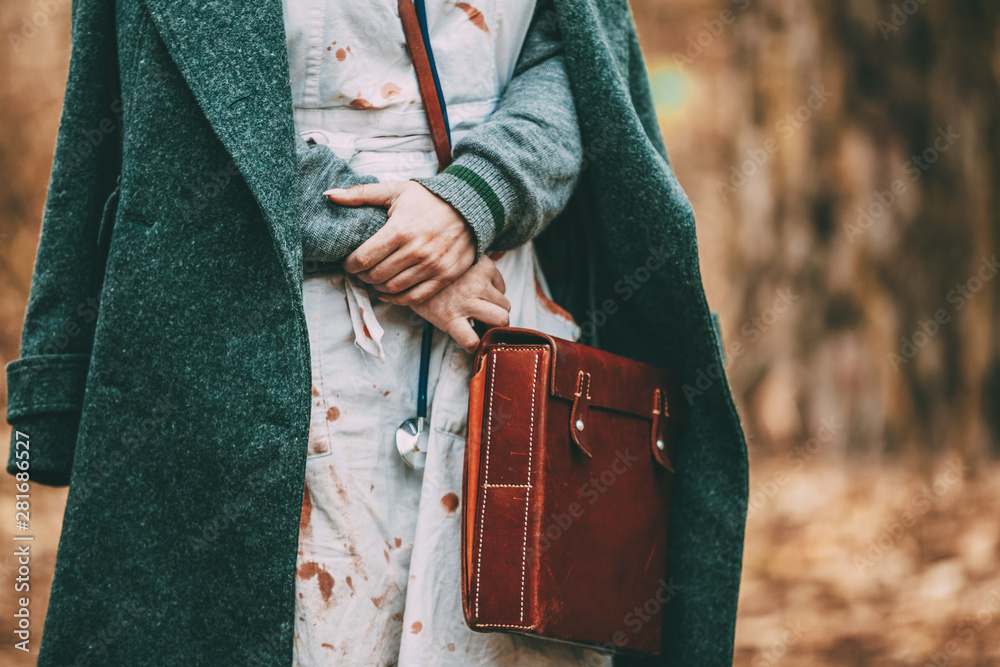 Samolepka Unidentified re-enactor wears historical German nurse paramedic Of World War II