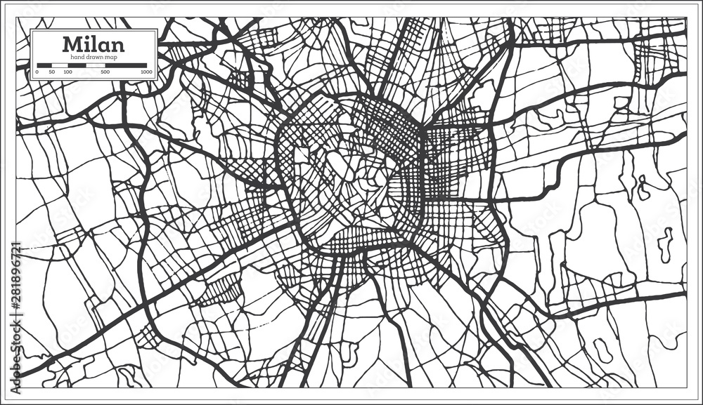 Samolepka Milan Italy City Map in Retro Style in Black and White Color