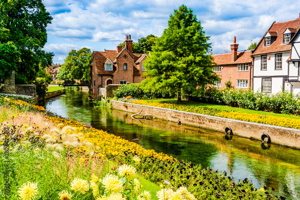 Samolepka Canterbury, Kent, UK: Landscape of the Great Stour river running through old timbered houses near Westgate Gardens