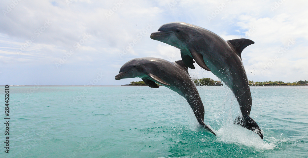 Samolepka Bottlenose Dolphins (Tursiops Truncatus), Caribbean Sea, Roatan, Bay Islands, Ho