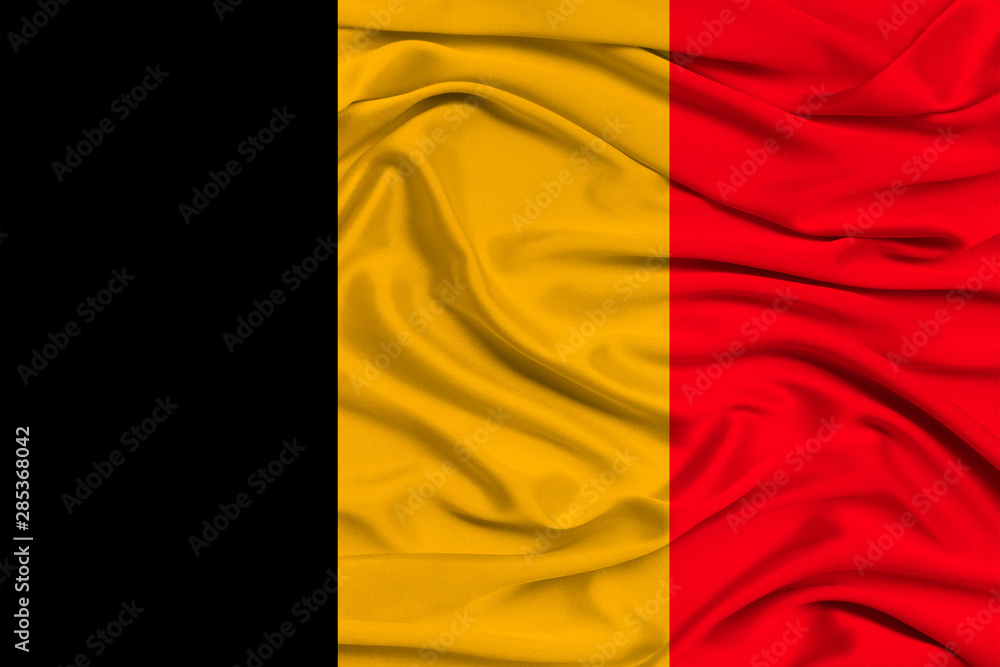 Samolepka national flag of belgium on gentle silk with wind folds, travel concept, immigra