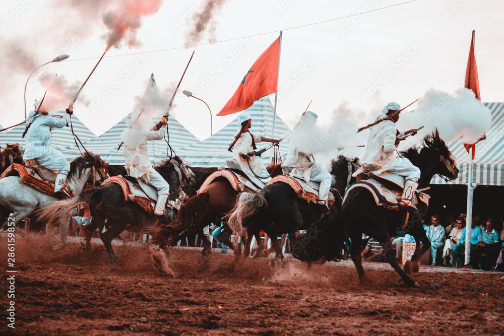 Samolepka Tbourida Fantasia Morocco inezgane festival kssima knights on horses show with a