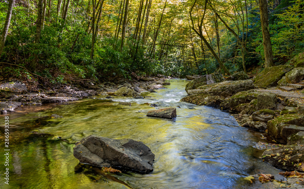 Samolepka Little Stony Creek, flowing beside the Cascades National Recreation Trail in southwest Virginia in autumn