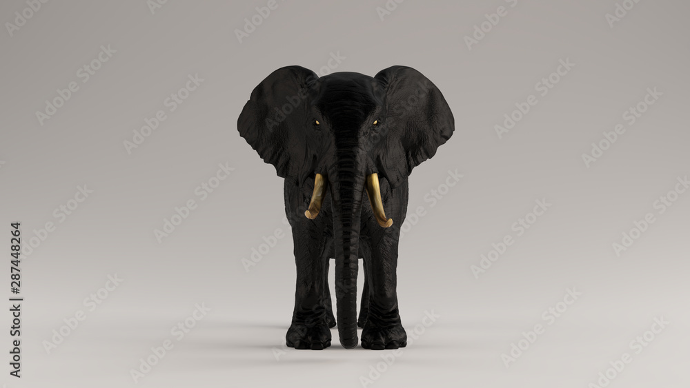 Samolepka Black Elephant with Golden Tusks Front View 3d illustration 3d render