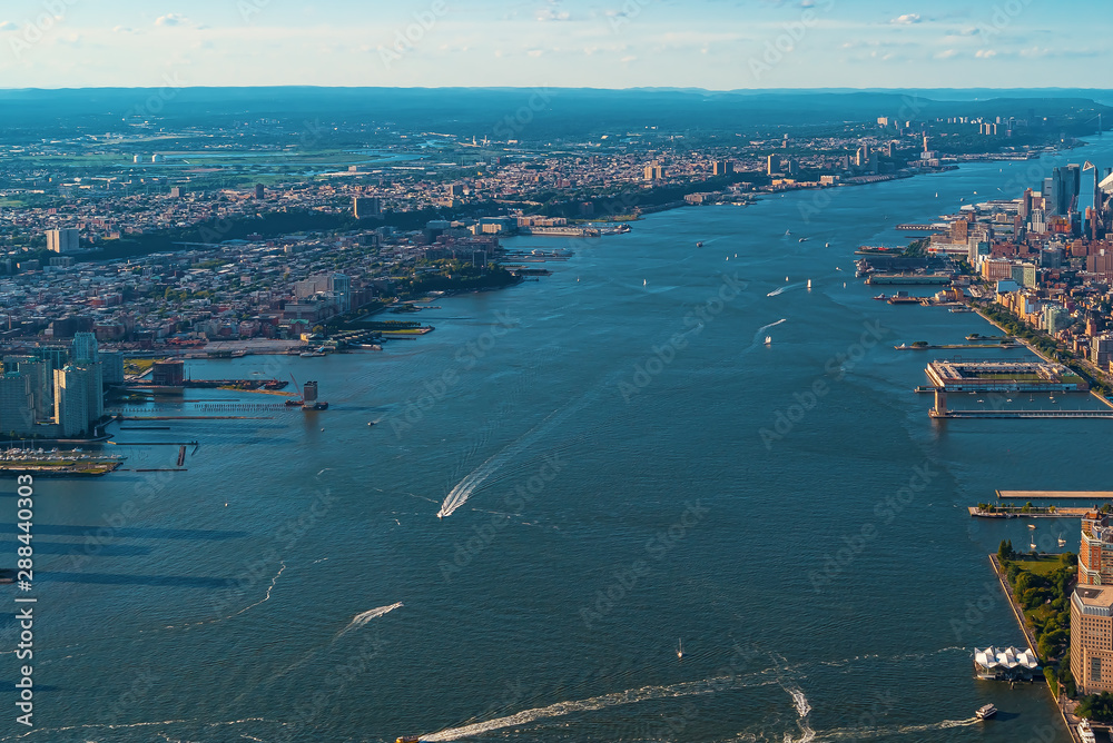 Samolepka Aerial view of the Hudson River between Manhatten and New Jersey