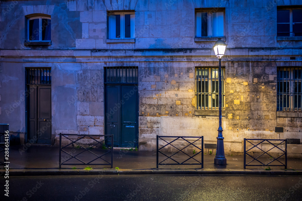 Samolepka The light of lonely street lamp on the evening street of Paris after the rain