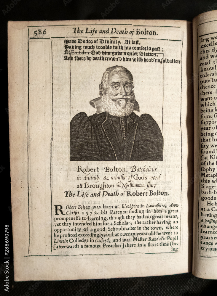 Samolepka Engraved portrait of Robert Bolton in an early C17th book