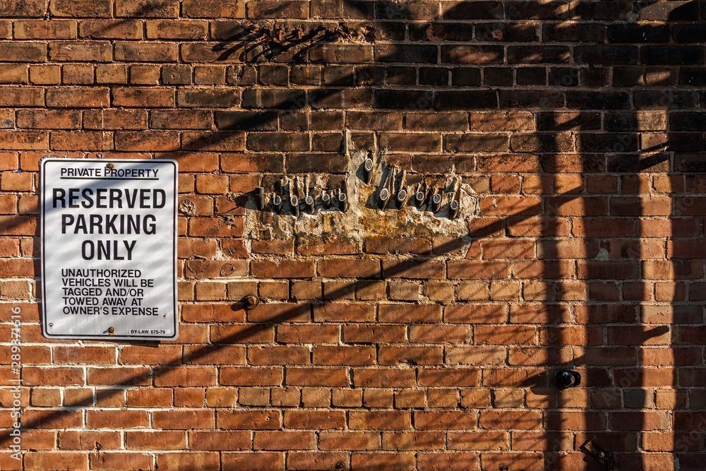 Samolepka Toronto, Ontario, Canada - May 2, 2015: Old brick factory wall perforated with s