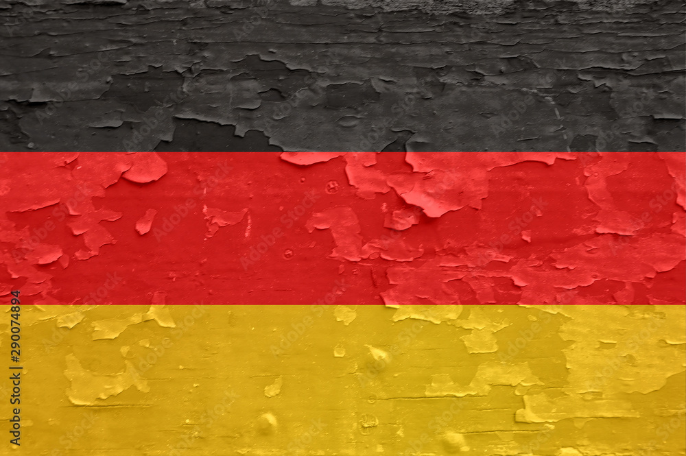 Samolepka Germany flag on old peeled wooden surface.