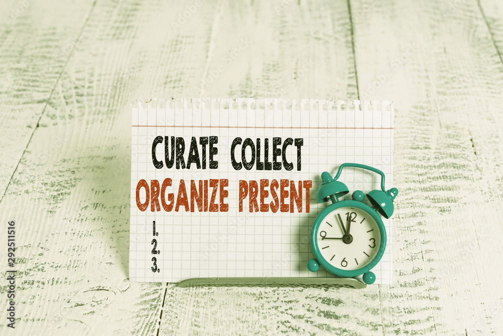 Samolepka Conceptual hand writing showing Curate Collect Organize Present