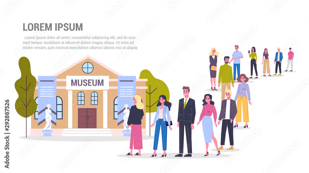 Samolepka People standing in long queue to the museum. Crowd in line.