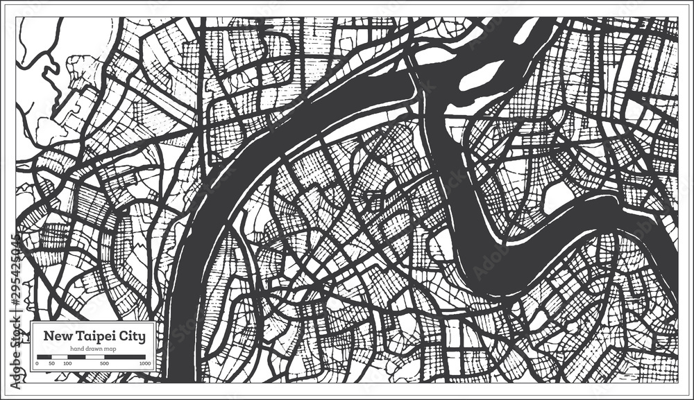 Samolepka New Taipei City Taiwan Indonesia City Map in Black and White Color