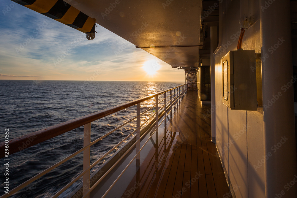Samolepka Spectacular sunrise over the sea horizon seen from the upper deck of a cruise sh