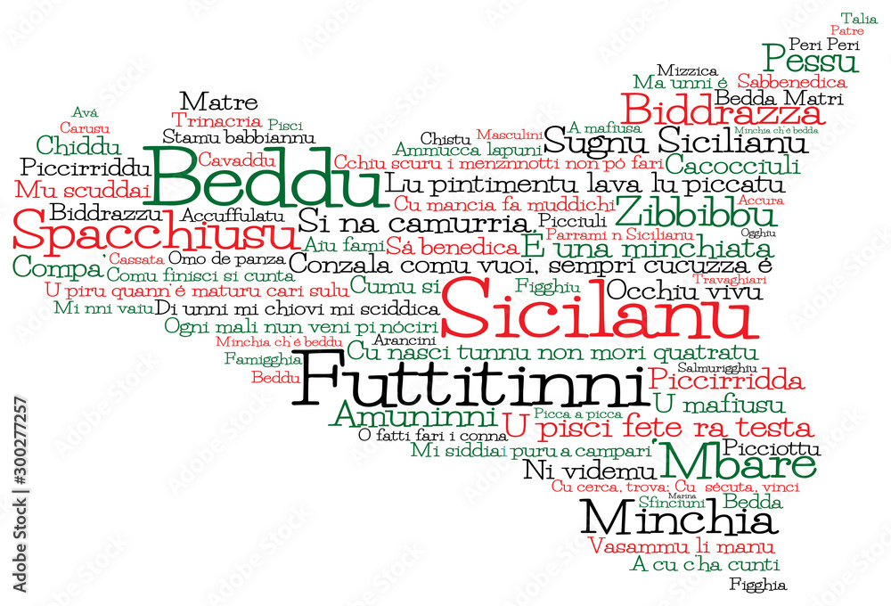 Samolepka Sicily map made from Sicilian slang words in vector format.