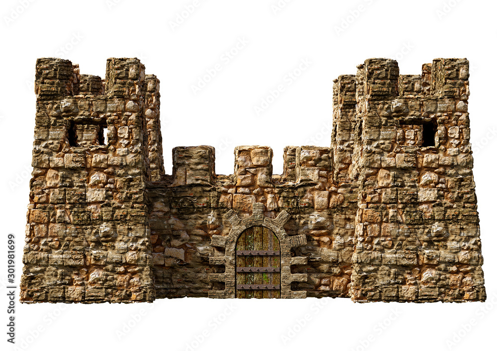 Samolepka Realistic medieval fortress castle with towers for surveillance isolated over wh