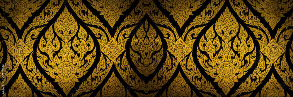 Samolepka Closeup Thai pattern carving lotus picture at door in temple