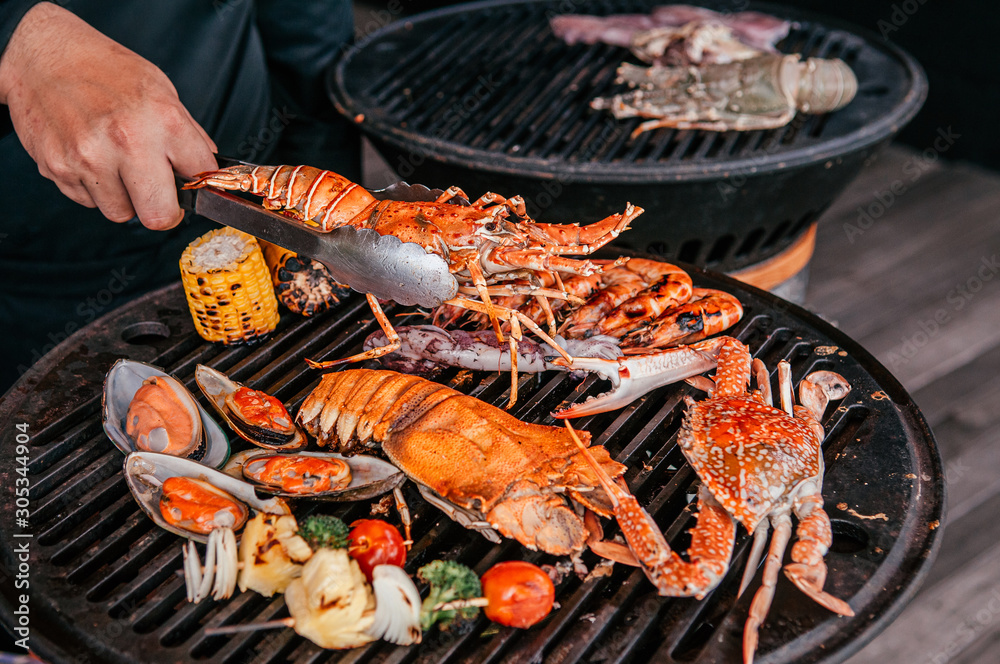 Samolepka Lobster and mix seafood barbecue cokking on grill